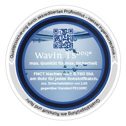 jede Werkstoffcharge von einem unabhängigen Institut auf einen FNCT-Wert von ≥ 8760 Stunden geprüft und lückenlos dokumentiert. Dazu bieten wir eine Haftungsvereinbarung auf 10 Jahre. Über 20 Millionen installierte Rohrmeter seit dem Jahr 2000 sind eine eindrucksvolle Bilanz von Wavin TS DOQ®. Die DOQumentierte Qualität (DOQ) wird durch eine zusätzliche Fremdüberwachung der Rohrproduktion sichergestellt.